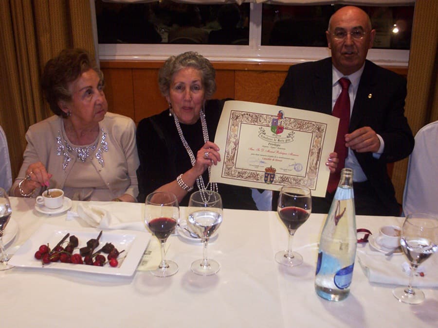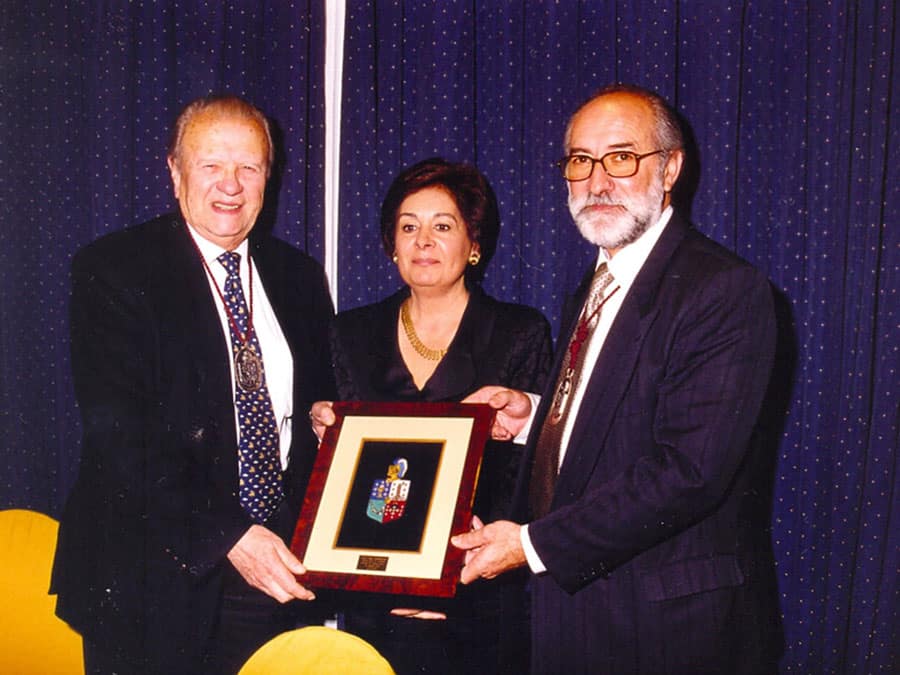 Recogen los Medallones Alfonso Pintos, viudo de Rosario López Noguerol (Charo la de Pintos) y Manuel Santiago Arenas Roca, hijo del Fundador Fernando Arenas Quintela.