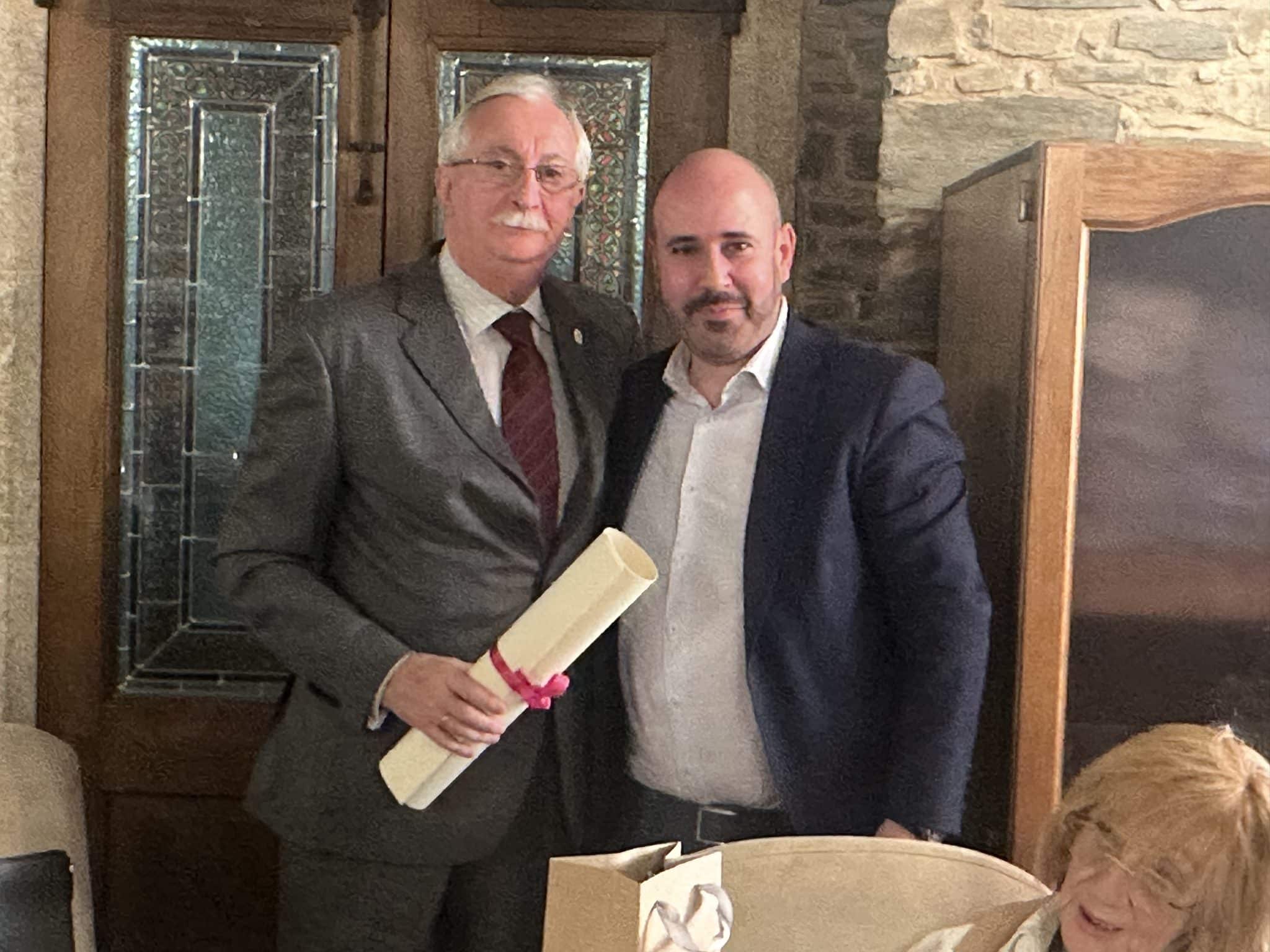 Y por todo cuanto, con su conducta y acciones, ha hecho y continúa haciendo en honor y beneficio de la Real Orden de Caballeros de María Pita se considera plenamente merecedor del alto honor de ser distinguido como Caballero de Mérito.